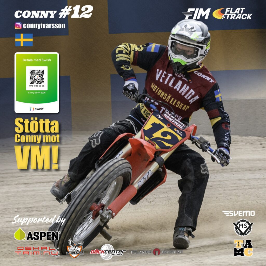 Conny har genom alla år representerat VMS sedan hans första start i A-laget 1982, ingen dålig karriär som nu kröns med ett VM i sin andra rundbanesport Flat Track.